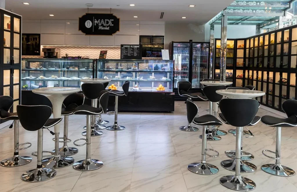 Local coffee, fresh pastries, and quick grab-and-go favorites—perfect for busy mornings or a calm mid-day recharge. Enjoy expertly brewed espresso, hot teas, and light bites in a cozy corner of the hotel.